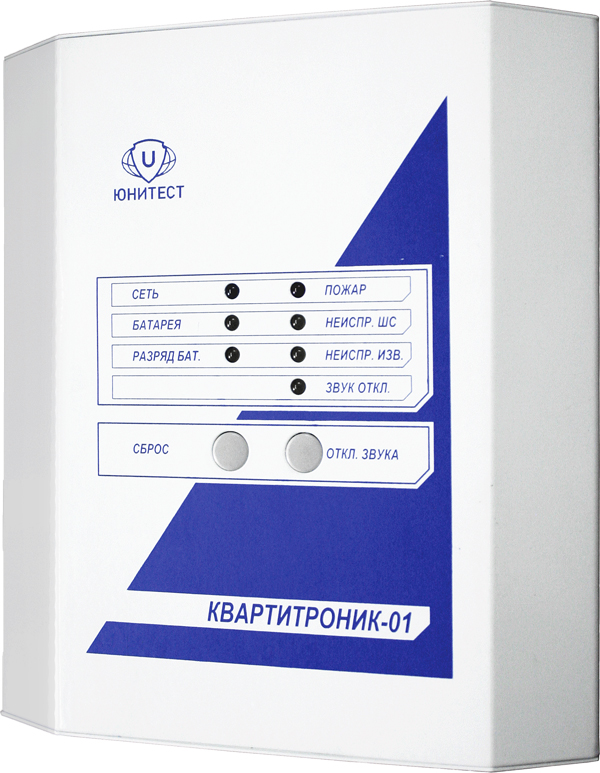 Прибор пожарной сигнализации квартирный. Обеспечивает внутриквартирное оповещение и отключение электропитания при пожаре. Может быть использован, как автономно, так и в составе системы ЮНИТРОНИК.